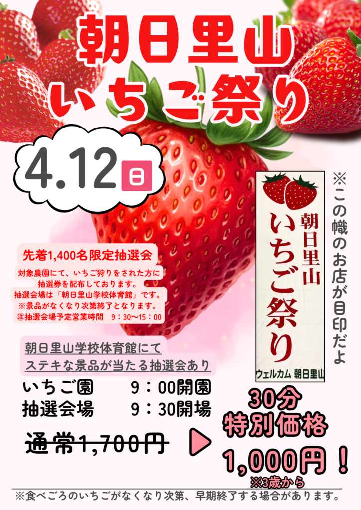 こちらのイベントはいちごがなくなり次第終了となります!
