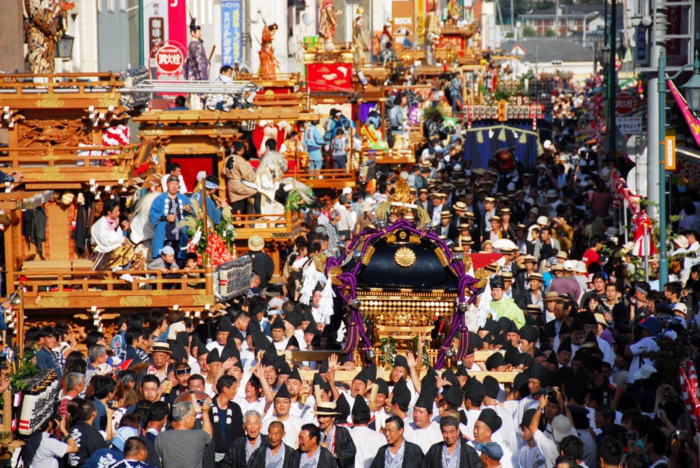 「例祭」だけは、従来通り、毎年9月15日(固定)に行われています。  「おまつり」期間中は約50万人の見物客で市街地は大賑わいします。