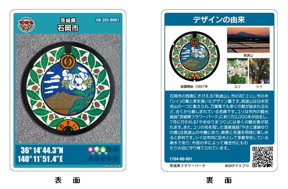 石岡市では、石岡地区で配布する「幌獅子」、八郷地区で配布する「ヤマユリ」の2種類のマンホールカードがあります。